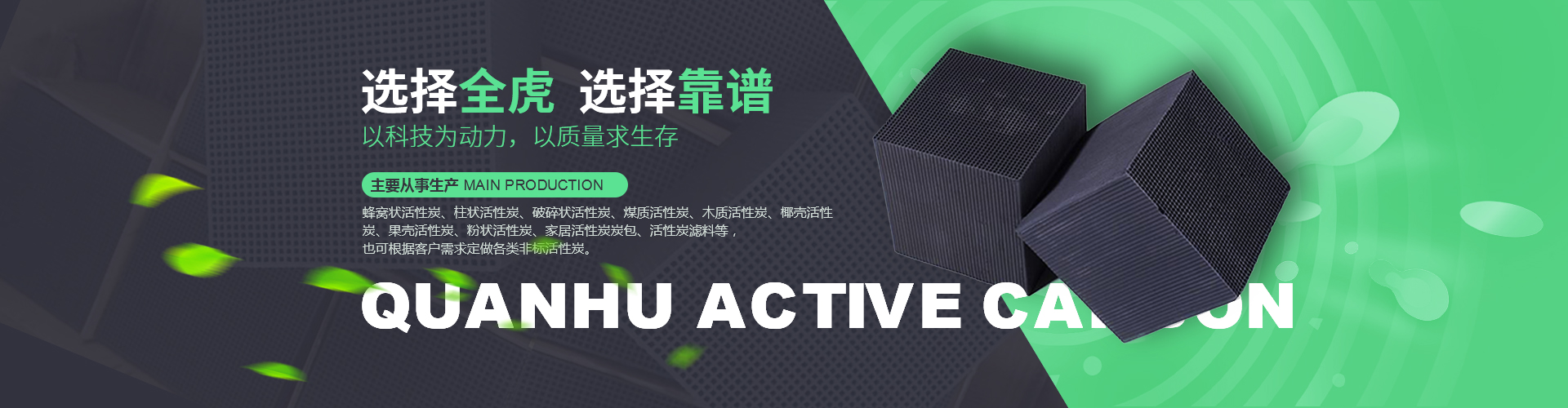 江蘇全虎活性炭有限公司是一家專業從事蜂窩狀活性炭、柱狀活性炭、破碎狀活性炭、煤質活性炭、木質活性炭、椰殼活性炭、果殼活性炭、粉狀活性炭、家居活性炭炭包、活性炭濾料等,也可根據客戶需求定做各類非標活性炭。公司自創建以來,始終堅持“以科技為先導、質量為根本、信譽為宗旨”的企業質量方針,不斷的引進生產設備吸收高技術人才。并先后在活性炭吸附材料及環保設備等領域取得突破,掌握多項世界先進水平的核心技術和產品工藝。